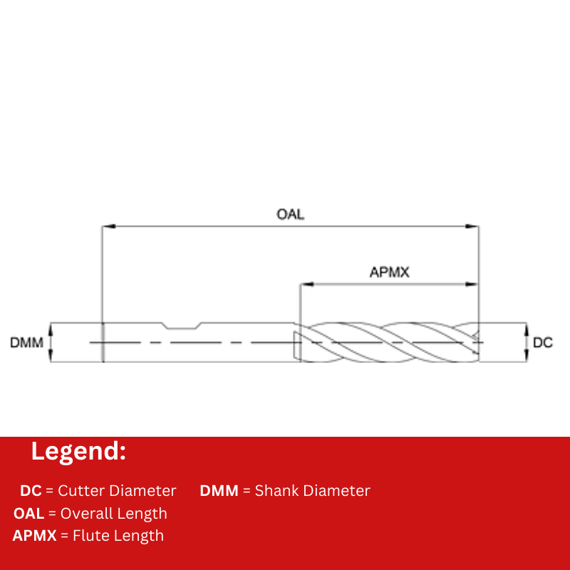 With a TiAlN (Titanium Aluminium Nitride) coating that enhances the tool's performance and prolongs its lifespan. The 3-flute design allows for efficient chip evacuation, ensuring smooth and accurate machining results. With its centre cutting capability, this end mill is suitable for a wide range of applications, including plunging, slotting, and contouring. The long length design provides extended reach, making it ideal for deep milling and machining in hard-to-reach areas.