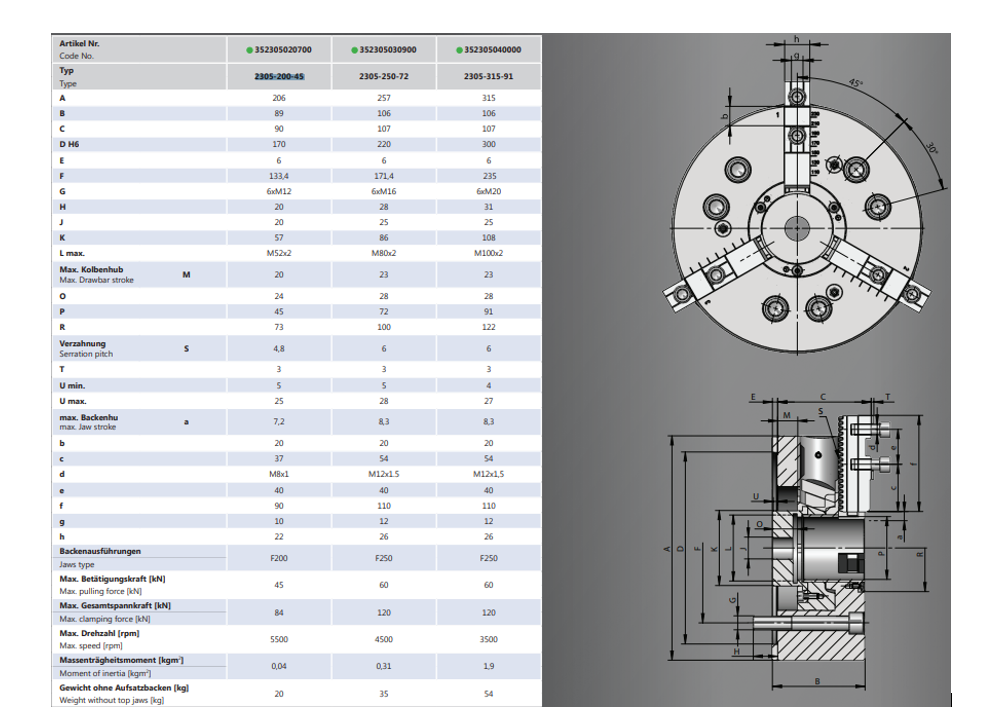 The 2305 series supplied by Bison have 3 jaws and the Quick Change Power Chuck cab save you time by allowing you to replace the jaws in under 1 minute. Along with an operating key these are also supplied with master jaws. All Bison power chucks are made in the Bison factory in Poland and offer exceptional quality and tool life.