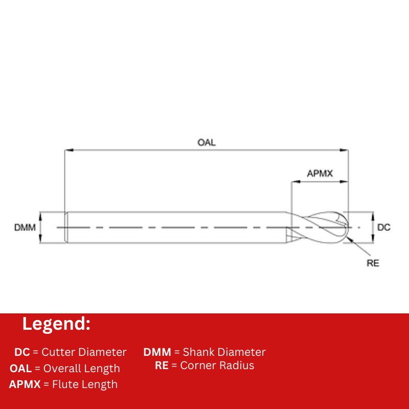 Europa Tools Carbide End Mill 2 Flute Ball Nose - Extended Neck - Pulsar DMX - 12mm x 110mm