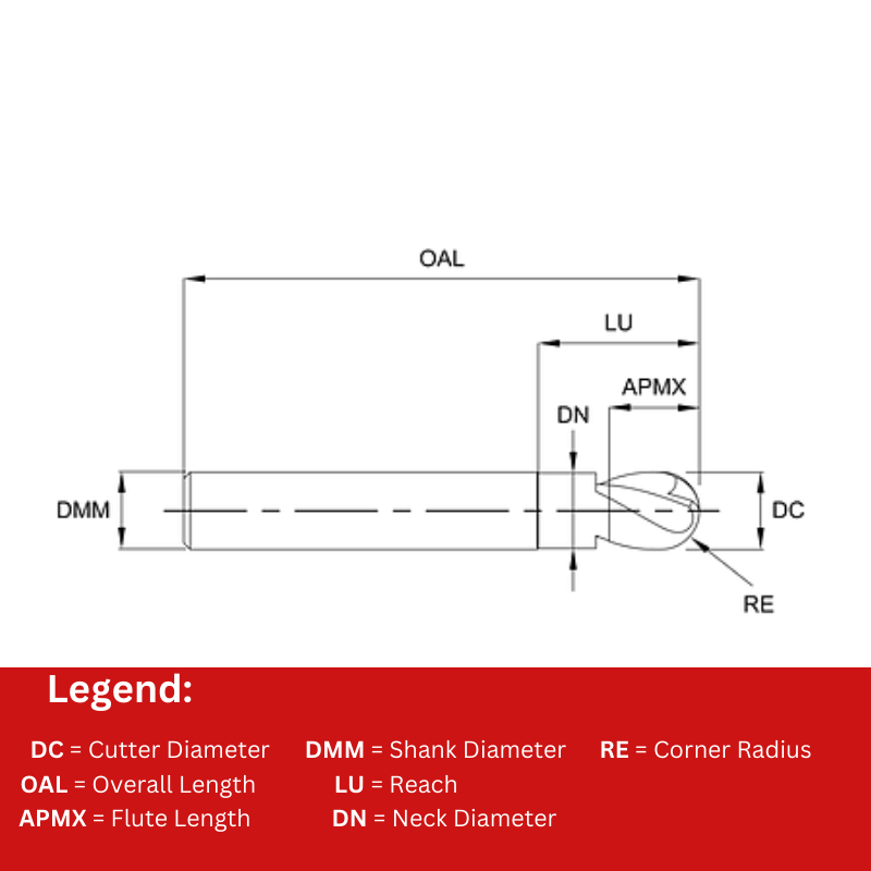 The Europa Tools Carbide End Mill 2 Flute Extended Neck - Ball Nose is specifically designed for deep, precise machining, offering excellent reach into hard-to-access areas. Its Ball Nose geometry enables smooth contouring and 3D surface work, ideal for complex profiles and curved surfaces. The extended neck enhances accessibility without sacrificing stability. Perfect for engineers tackling intricate or deep machining tasks where precision is crucial.