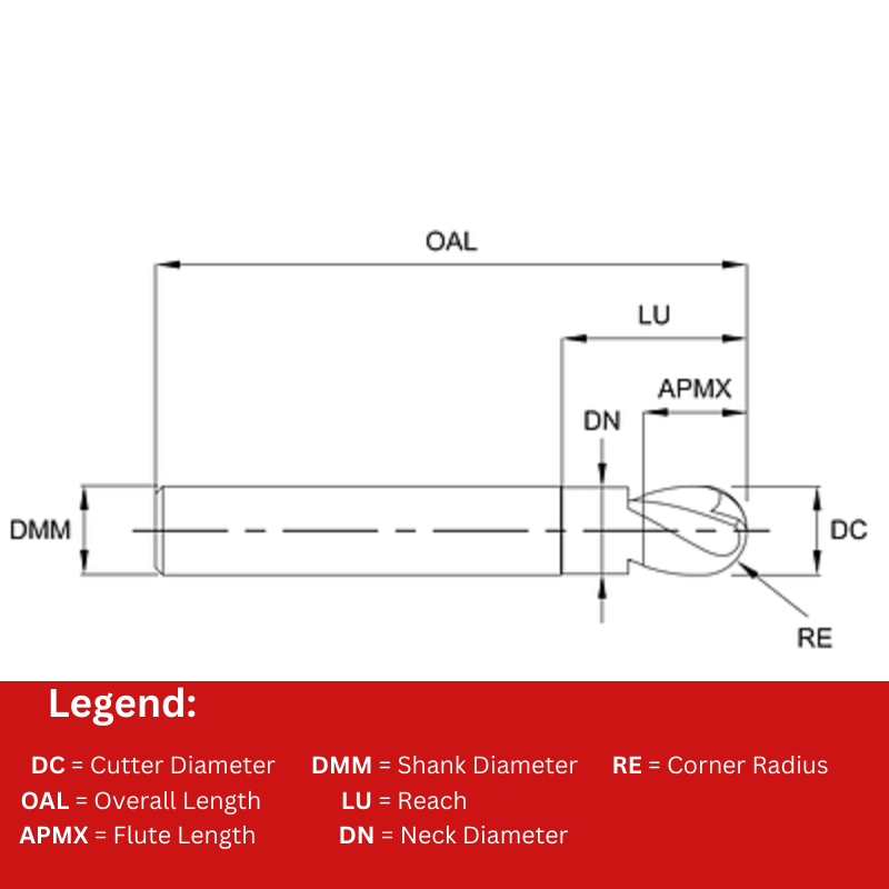 The Europa Tools Carbide End Mill 2 Flute Extended Neck - Ball Nose is specifically designed for deep, precise machining, offering excellent reach into hard-to-access areas. Its Ball Nose geometry enables smooth contouring and 3D surface work, ideal for complex profiles and curved surfaces. The extended neck enhances accessibility without sacrificing stability. Perfect for engineers tackling intricate or deep machining tasks where precision is crucial.