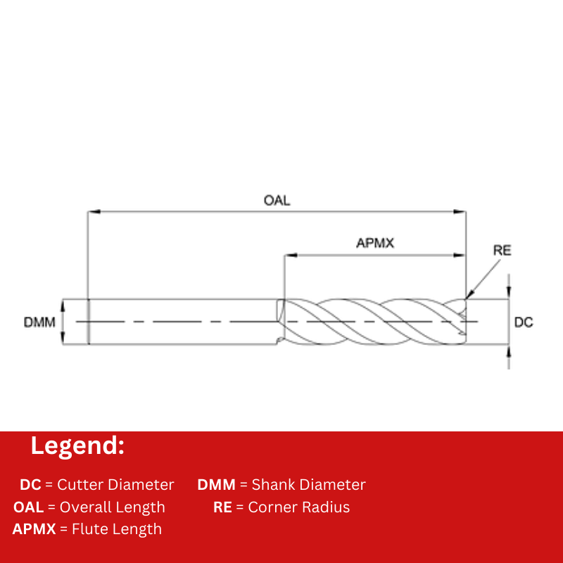 The Europa Tools Carbide End Mill 3 Flute - Corner Radius with Chipbreaker for Aluminium - Standard Length Mastermill AL-HPC is designed for high-efficiency machining of aluminum and other non-ferrous materials. The 3 flute configuration promotes optimal chip evacuation, enabling higher feed rates and smoother surface finishes. The Corner Radius enhances edge strength and reduces chipping, while the integrated Chipbreaker further improves chip control, preventing clogging and ensuring consistent cutting performance. With a Standard Length, this end mill offers stability and rigidity during operation. Tailored for aluminum applications, it delivers reliable results, making it an ideal choice for engineers looking to enhance productivity and quality in their machining tasks.