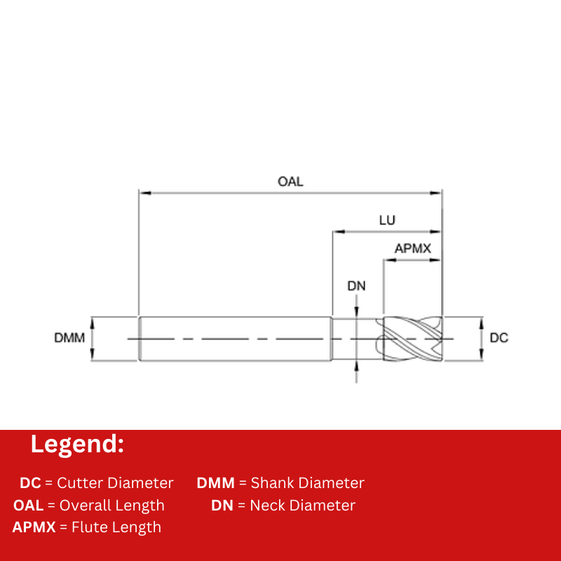 The Europa Tools Carbide End Mill 4 Flute - Square Edge - Extended Neck - HX2 is designed for high-precision milling, particularly in deep-reach applications. The 4 flute configuration allows for efficient material removal and a smooth surface finish, while the Square Edge geometry delivers sharp, clean cuts ideal for general-purpose machining. Its Extended Neck offers greater reach for deep cavities or complex geometries without sacrificing stability. The HX2 coating provides enhanced wear resistance and durability, ensuring consistent performance even in challenging cutting conditions. Suitable for use across a variety of materials, this end mill is a reliable choice for intricate milling tasks.