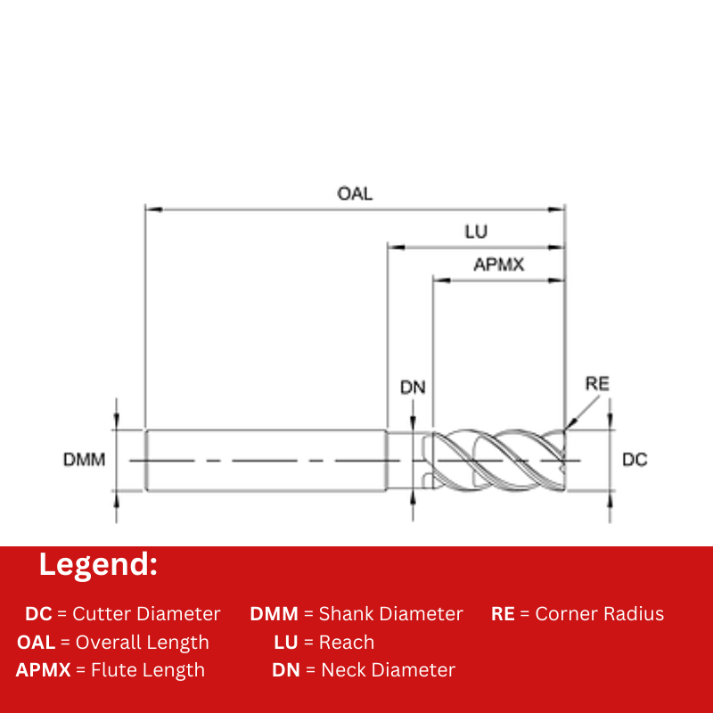 The Europa Tools Carbide End Mill 4 Flute Corner Radius - Double Core - Mastermill VXD is engineered for enhanced stability and performance in challenging machining applications. Its Corner Radius design reduces chipping and improves tool longevity, while the 4 flutes facilitate efficient chip evacuation for superior surface finishes. The Double Core construction provides additional strength and rigidity, making it ideal for high-precision operations. Coated with Mastermill VXD, this end mill offers excellent wear resistance and high-speed performance, perfect for engineers seeking reliability and durability in demanding cutting environments.