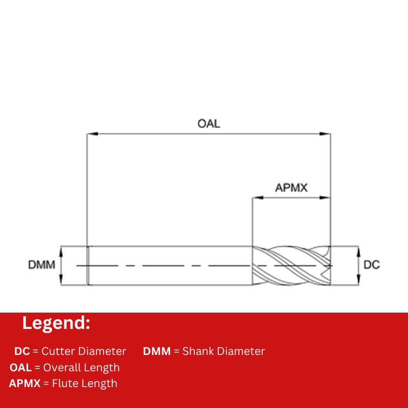 Europa Tools Carbide End Mill 4 Flute Uncoated - Square Edge - Standard Length - K30 - 8mm