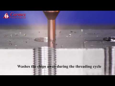Carmex has developed a new, innovative range of solid carbide thread milling cutters, the MTSB type with internal cooling bore. The coolant bore provides high coolant pressure through the tool into the application pre-hole, and washes the chips away during the threading circle. The coolant liquid also cools the tool cutting edge very effectively.