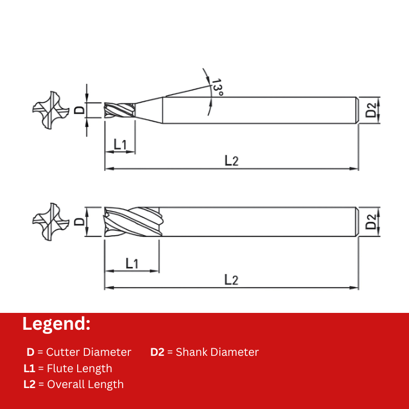Widin Carbide Square End Mill For Mold & Die - 4 Flute Variable - 2mm